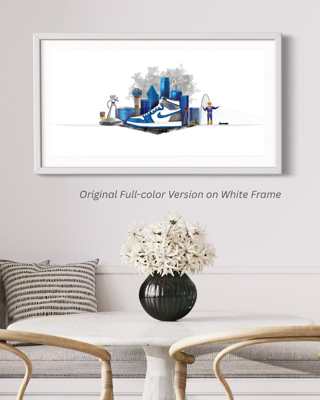 Skylines + Stories invites viewers to see themselves in the art, celebrating hometown pride, sneaker culture, and the beauty of individuality expressed through both art and movement. This piece is an opportunity to own a work that honors the places that shape us and the steps that define who we are.
