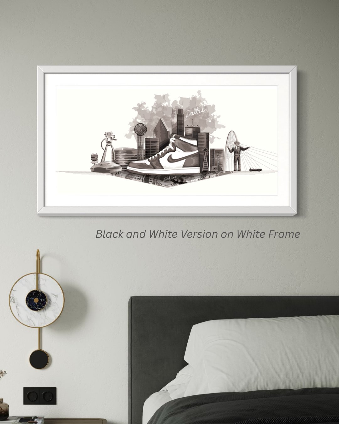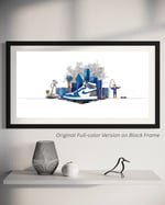 This limited edition art print is a perfect reproduction of Joshua Montgomery’s Skylines + Stories series, a hand-drawn celebration of identity, place, and personal expression. Each piece blends iconic architecture with timeless sneaker design to capture the heartbeat of a city and the individuality of its people. Every skyline represents home, and every shoe symbolizes the journey that connects us to it.